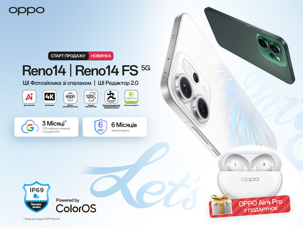 спеціальну пропозицію: власники OPPO Reno14 отримають на 3 місяці