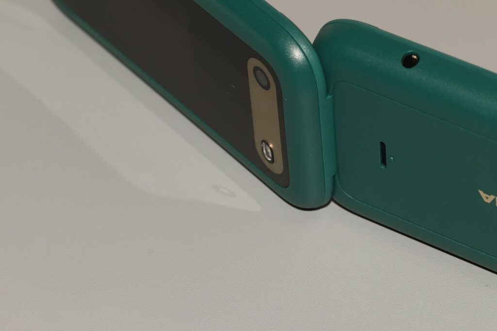Далі за звук. У HMD 2660 Flip маємо дует-класику – окремий розмовний динамік і окремий динамік гучного зв’язку. Щодо їх розміщення, тут все класично – над дисплеєм «говорилка», в товщі знімної кришки акумуляторного відсіку — овальний вивід «гучномовця».