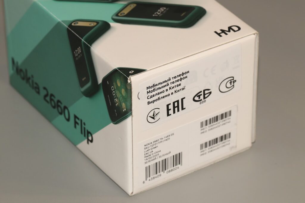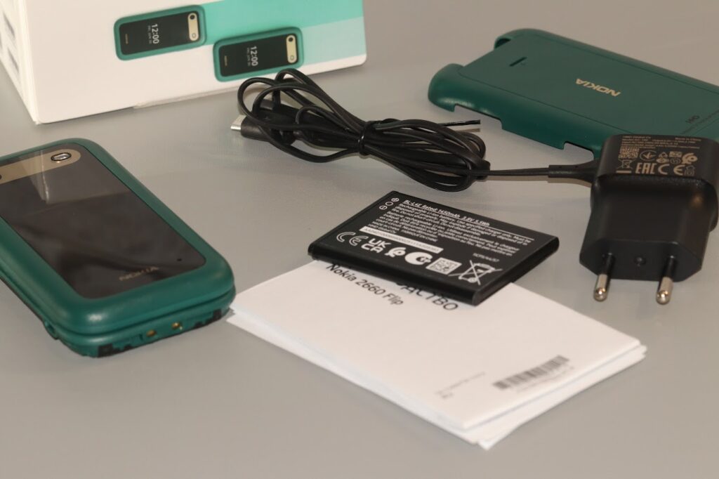 Комплектацію HMD 2660 Flip доповнено мережевим зарядним пристроєм з незнімним кабелем micro-USB, знімною батареєю, а також необхідною документацією.