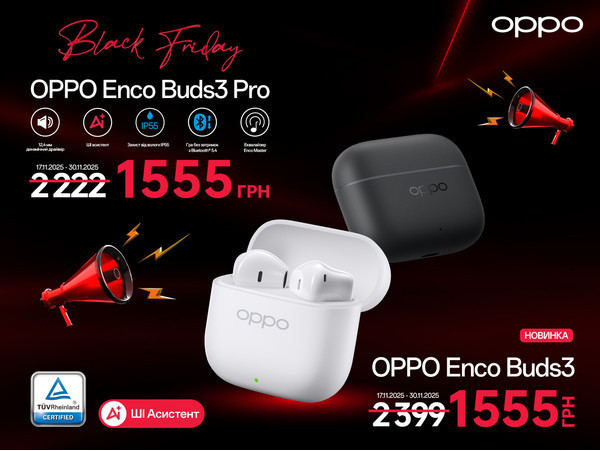 ● WOW! Навушники ОРРО Buds2 Pro за 999 грн, замість 1999 грн (17/11-30/11)