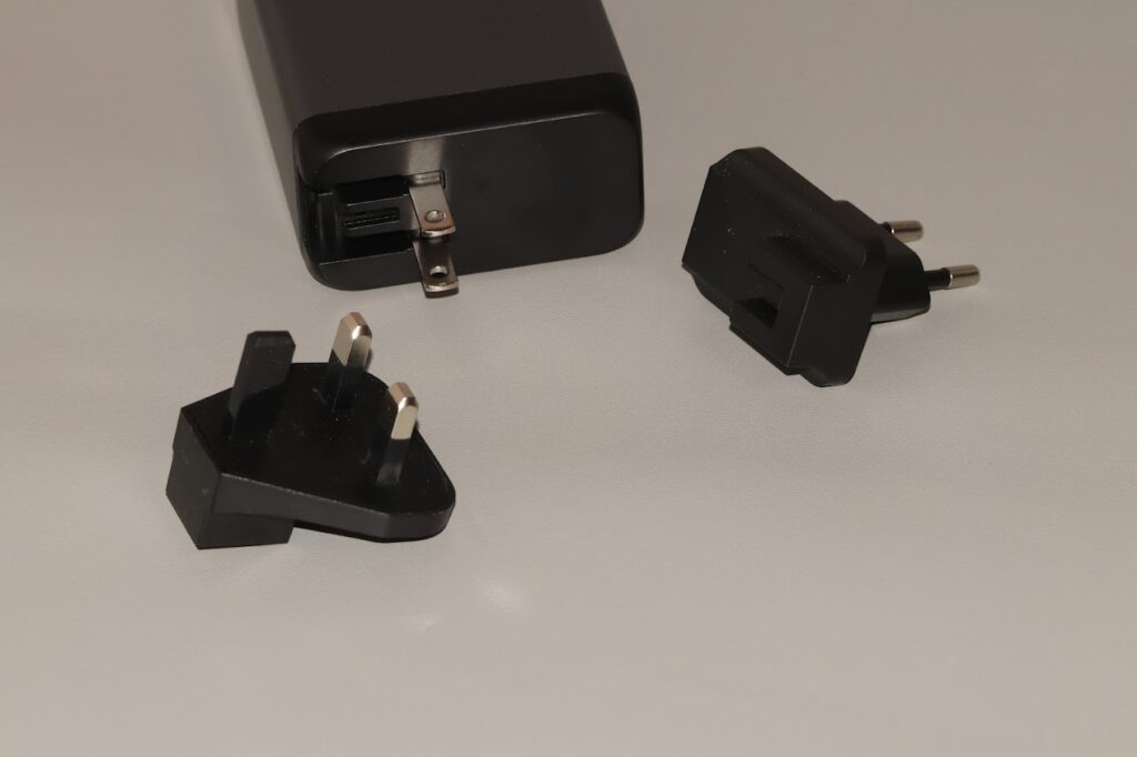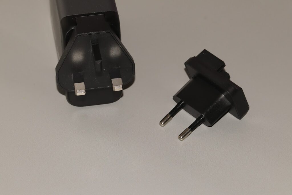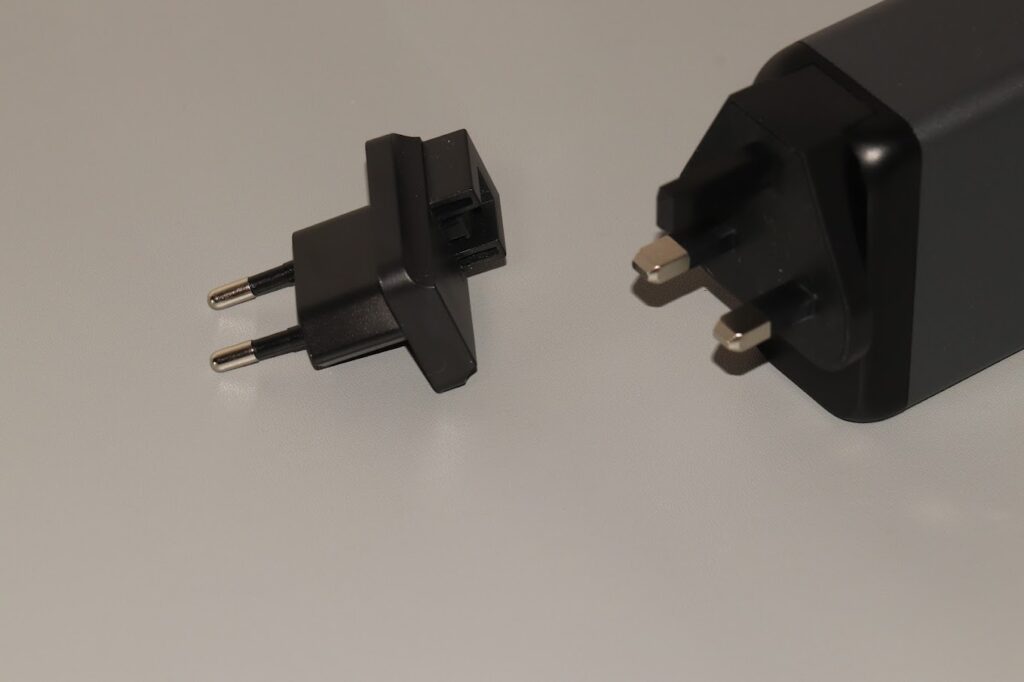 Вище ми вже говорили за саме два перехідники в стандартному комплекті поставки – під розетки ЄС та Великобританії. Зі встановленням їх у користувача не виникне жодних запитань – мав змогу перевірити особисто.