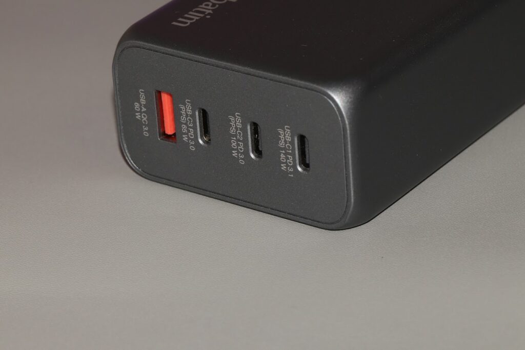 • Загальна вихідна потужність портів — USB-C1+USB-C2: 140 Вт + 100 Вт, USB-C1+USB-C3: 140 Вт + 65 Вт, USB-C1+USB-USB-A: 140 Вт + 60 Вт, USB-C2+USB-C3: 65 Вт + 35 Вт, USB-C2+USB-USB-A: 65 Вт + 30 Вт, USB-C3+USB-USB-A: 12 Вт + 12 Вт, USB-C1+USB-C2+USB-C3: 140 Вт + 65 Вт + 35 Вт, USB-C1+USB-C2+USB-A: 140 Вт + 65 Вт + 30 Вт, USB-C1+USB-C3+USB-A: 140 Вт + 12 Вт + 12 Вт, USB-C2+USB-C3+USB-A: 65 Вт + 12 Вт + 12 Вт, USB-C1+USB-C2+USB-C3+USB-A: 140 Вт + 65 Вт + 12 Вт + 12 Вт;