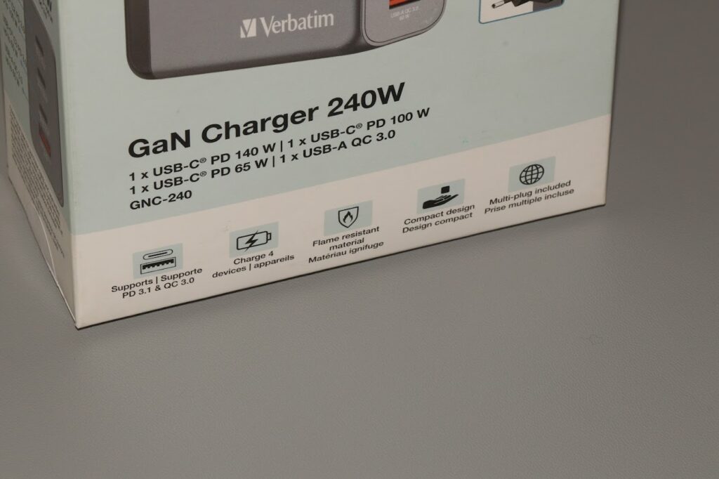 Щодо стандартів швидкої зарядки Verbatim GaN 240Вт (32205), тут мова за Power Delivery 3.1, Quick Charge 3.0 та PPS. За всіх них ми вже говорили на сторінках нашого видання і не лише в оглядах адаптерів Verbatim, а тому повторюватися знову не будемо.
