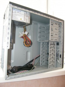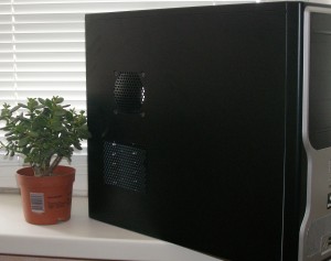 Боковые панели в корпусе реализованы из металла. Метал достаточно толстый – около двух миллиметров. К основному корпусу панели крепятся при помощи специальных металлических зазоров, реализованных на внутренней стороне панелей. Фиксация на корпусе традиционная – при помощи шурупов грани боковых панелей крепятся к телу тыльной.
