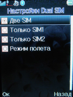 В разделе меню «Настройки» реализовано приложение, отвечающее за работу с двумя SIM-картами. Из него пользователь может выключить одну из SIM-омк, либо, в случае необходимости, отключить обе.