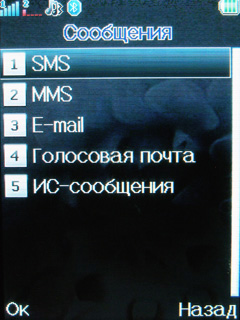 Из подпункта меню «Сообщения» можно отправить или принять SMS/MMS-сообщения, а также сообщения электронной почты.