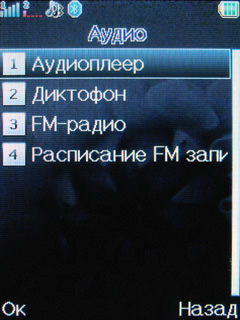 Fly G1 оснащен неплохим приложением для проигрывания аудио. Среди возможностей я бы отметил поддержку форматов AMR, AAC, WAV, а также Midi, возможность сортировки треков по нескольким направлениям, а поддержку приложением работы в фоновом режиме.