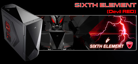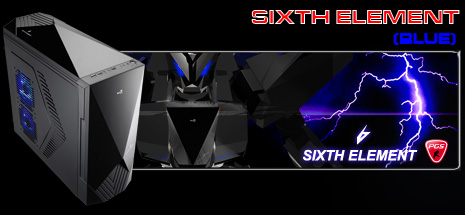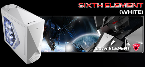 Корпус с таинственным названием 6th Element в дизайне содержит элементы простых геометрических форм, что подчеркивает его уникальность и позволяет выделиться среди других. Продукт входит в серию PGS-R и поставляется в трех цветовых вариантах: Blue (полностью черный интерьер, с элементами синего цвета), Red (полностью черный интерьер, с элементами красного цвета) и White (полностью белый интерьер, с элементами черного цвета). Корпус сделан из стали SECC 0,6 мм. Разработанный специально для геймеров и энтузиастов, 6th Element способен принять на борт видеокарты длиной до 400 мм, а так же в общей сложности пять вентиляторов для охлаждения системы.