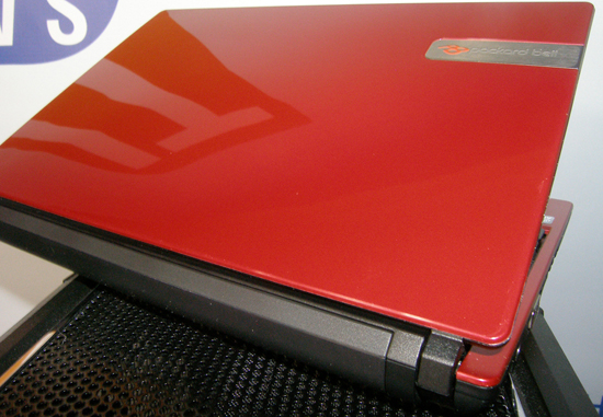 Корпус Packard Bell DOT se R-202 RU изготовлен из пластика, красного и черного цветов.