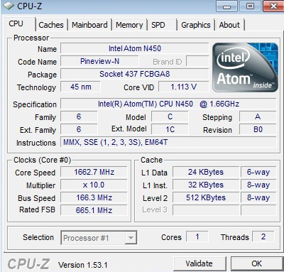 За обработку всех процессов в системе отвечает процессор Intel Atom N450, с тактовой частотой 1660 МГц, кэш L2 0,5 Мбайт. Чипсет Intel NM10 Express.