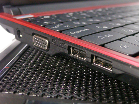 Еще два порта-USB расположены на левой боковой панели. Кроме них здесь же находится порт подключения внешнего монитора, а также разъем для кабеля зарядного устройства.