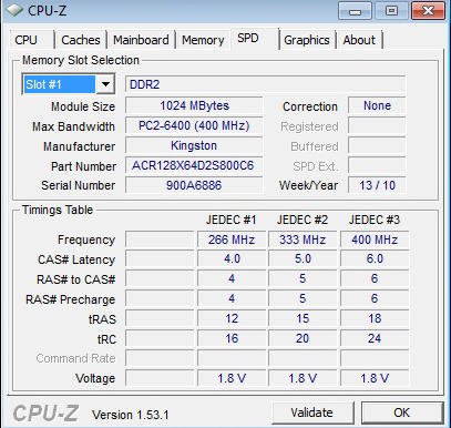 Объем оперативной памяти 1 ГБ. Стандарт DDRII, частота 667 МГц. Производитель Kingston.