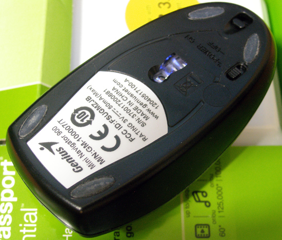 Ни для кого не секрет, что цвет лазера оптических мышек априори красный, независимо от производителя или модели. В Genius Mini Navigator 900 мое внимание привлекло и то, что цвет лазера здесь синий. Синяя подсветка лазера, конечно же, подразумевает применение другой технологии, но той, «традиционной», которую мы то и дело видим в массе других девайсов. В данном случае речь идет о так называемой технологии Blue Eye Tracking. Применение ее позволяет оптическим мышкам работать на совершенно любой поверхности, в том числе и стеклянной. Кроме этого, при помощи этой технологии производителю на выходе удалось снизить себестоимость, а, соответственно, и стоимость его для конечного потребителя, тогда и синхронизация, и в целом функциональность продукта не уступают более дорогим устройствам.