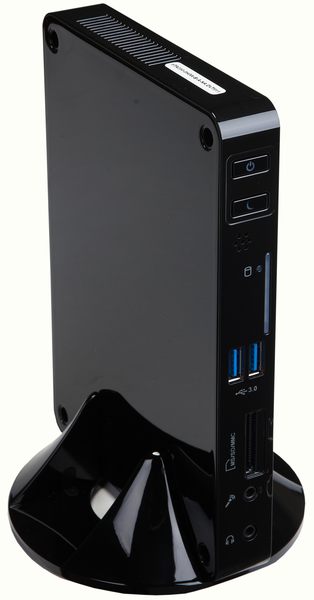 В неттоп можно установить до 4 Гб оперативной памяти DDR3 с частотой до 1066 МГц, любой 2,5-дюймовый винчестер с интерфейсом SATAII. Внешний пишущий DVD-привод поставляется в виде дополнительной опции. Система укомплектована всеми необходимыми разъемами, включая скоростные порты USB 3.0 и цифровой интерфейс HDMI для вывода изображения. В качестве приятного дополнения в корпус уже интегрирован контроллер стандарта Wi-Fi 802.11n.