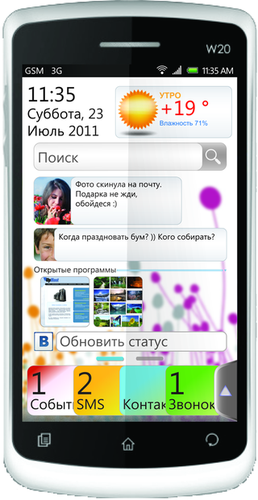 На главном экране телефона видны последние сообщения, можно изменить статус.
