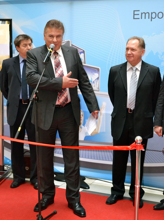 Раймонд Армес, генеральный директор ЗАО «NEC Нева Коммуникационные Системы» (Россия), представляет гостям директора представительства ЗАО «NEC Нева Коммуникационные Системы».