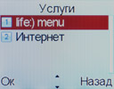 В подменю «Услуги» реализована возможность работать с так называемым «операторским меню». Кроме того, здесь же реализована возможность воспользоваться «штатным» браузером Интернет. О настройках и возможностях браузера говорить не буду – они простые. Интерес здесь представляет только одна особенность – в подменю настроек браузера имеется возможность выбрать SIM-карту, с которой будет взиматься плата за потребляемый трафик.