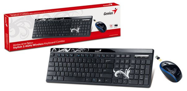 Genius представляет SlimStar i8150 Tattoo – стильный беспроводный комплект из мини-клавиатуры и мыши с декоративным оформлением «тату».