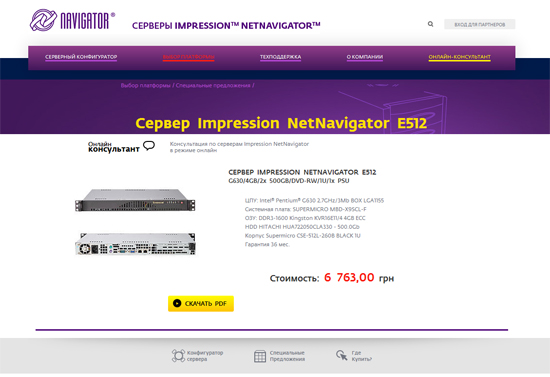 Стремясь постоянно наращивать продажи оборудования ТМ Impression NetNavigator, украинский производитель серверов открыл интернет-ресурс servers.navigator.ua, ориентированный как на партнеров компании, так и клиентов сегмента SMB.